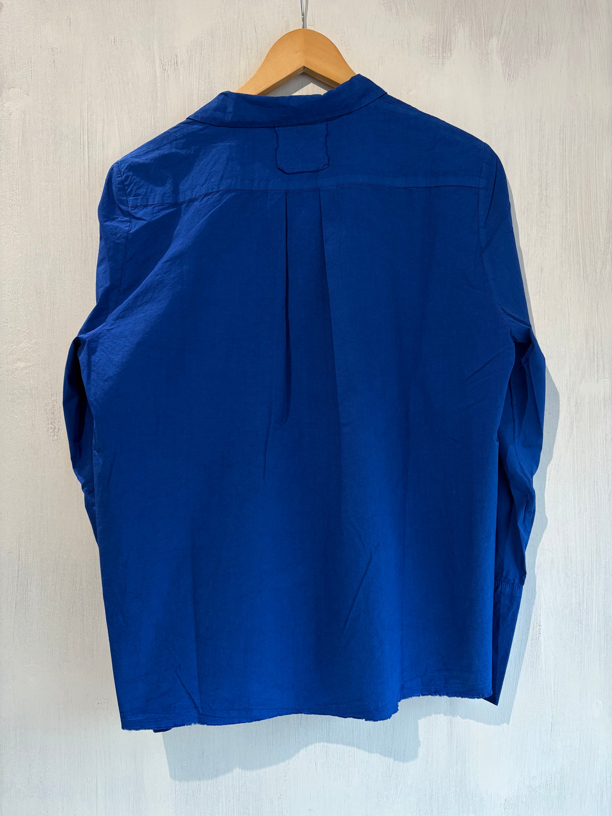 A royal blue cotton shirt, designed with a small collar, a full button front and elongated button cuffs! Created in a straight cut silhouette.